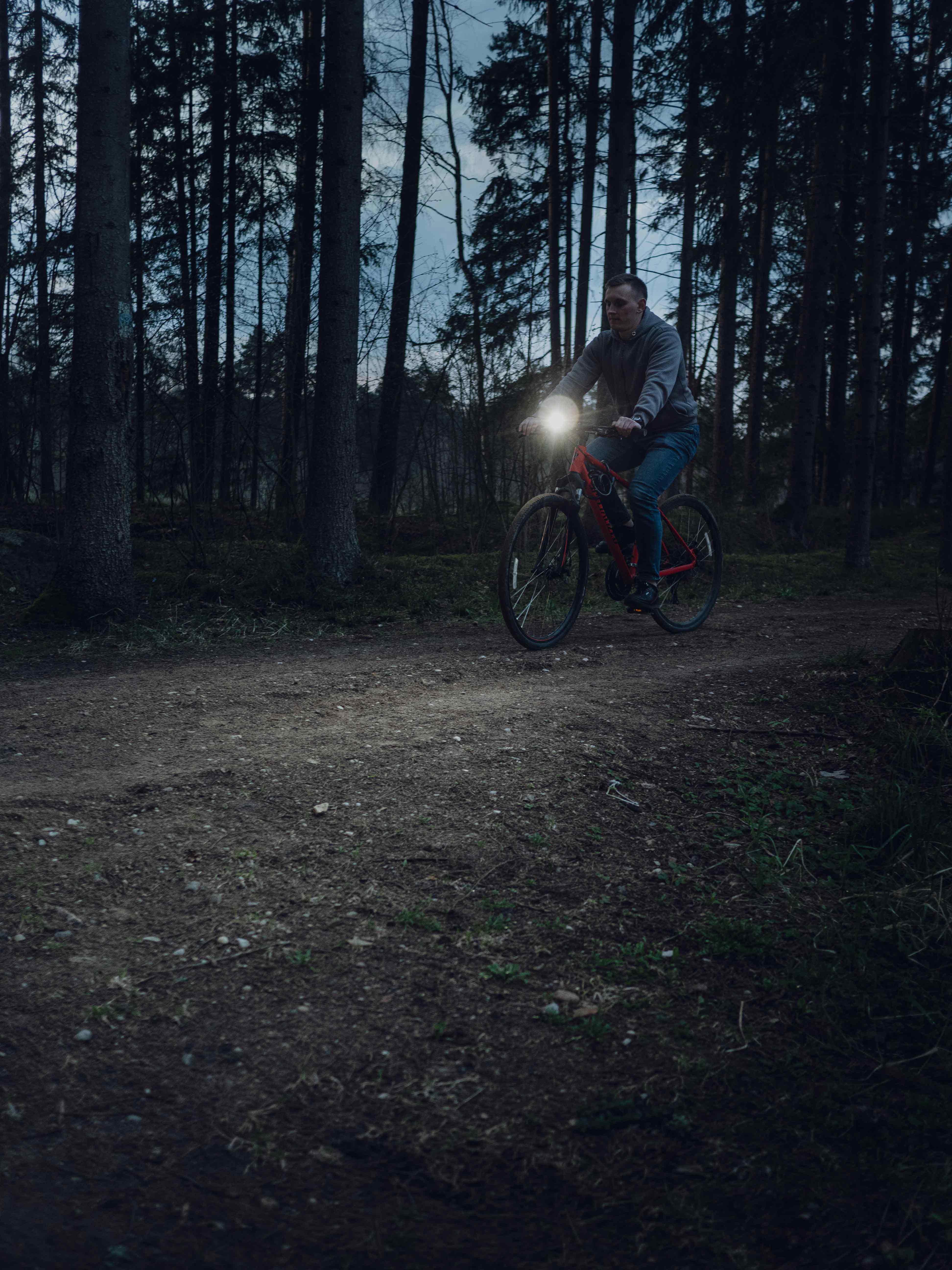 • Красный свет яркостью 230 люмен эффективен в условиях тумана или низкой видимости. Он может использоваться как задний велогабарит или мигающий предупредительный сигнал. Красный свет не спугнёт животных, рыбу или насекомых и комфортен для ночного зрения.